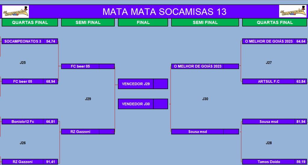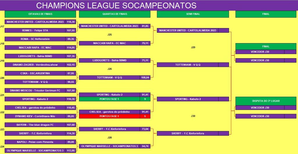 CHAMPIONS LEAGUE SOCAMPEONATOS 2 – FASE MATA MATA – QUARTAS DE FINAIS Publicado em 10/07/2023 por socampeonatos