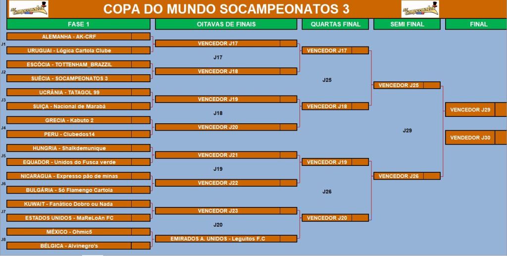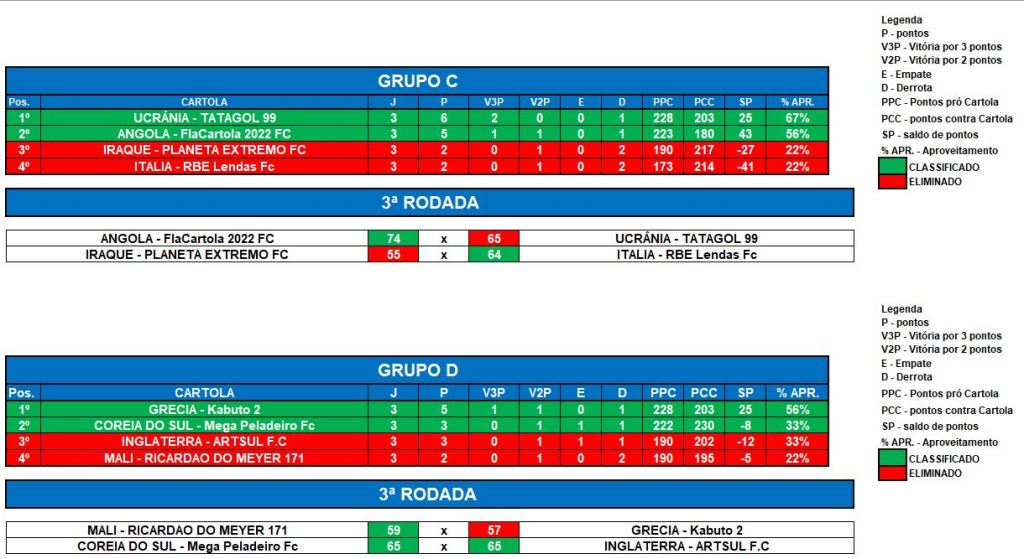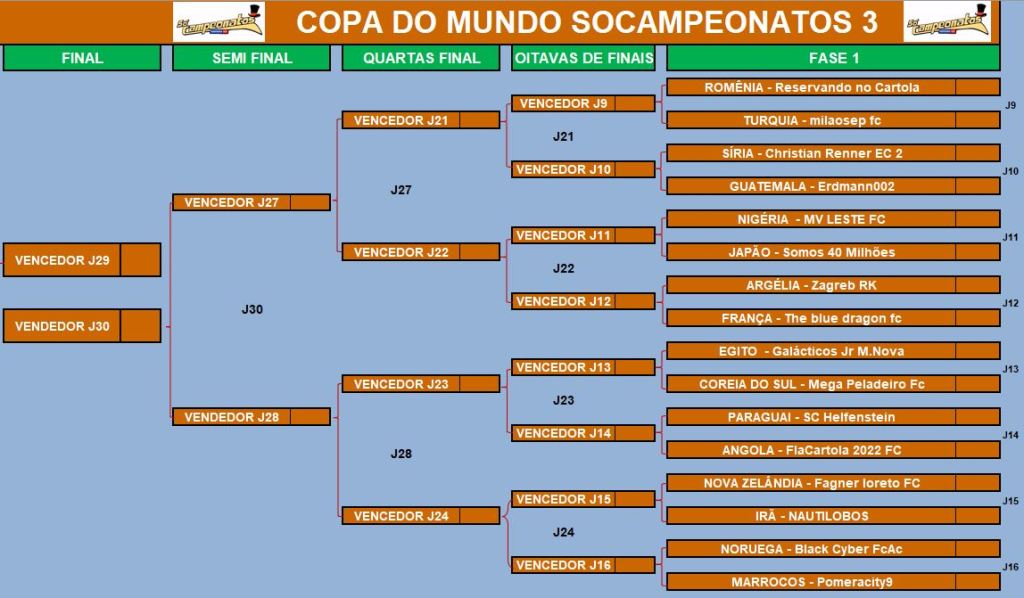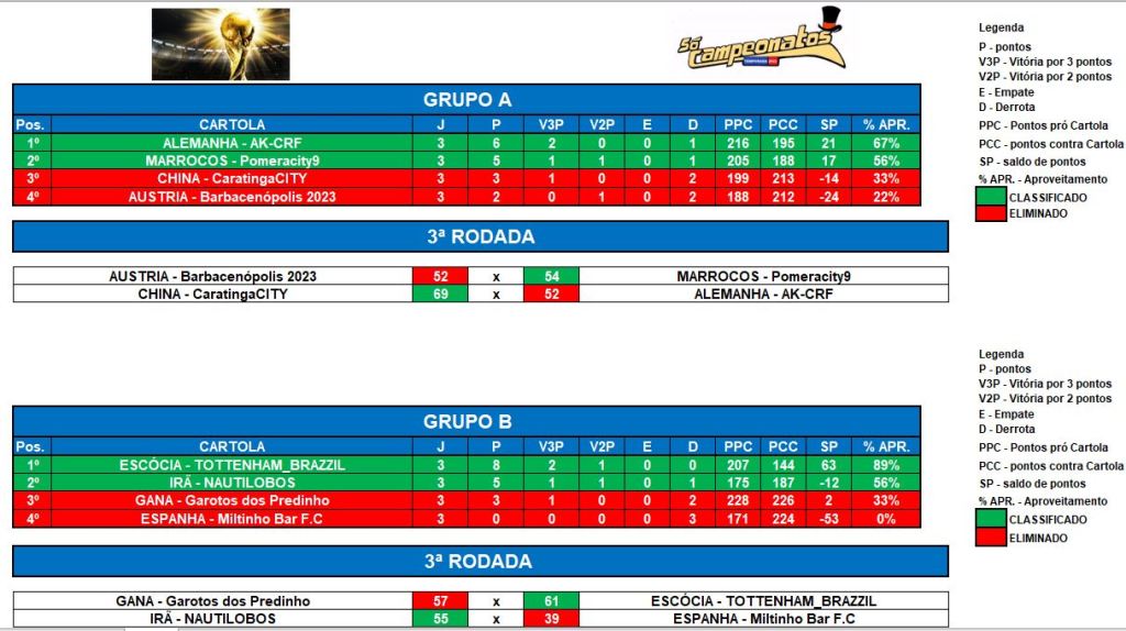 COPA DO MUNDO SOCAMPEONATOS 3 – FASE DE GRUPOS – ÚLTIMA RODADA Publicado em 25/07/2023 por socampeonatos
