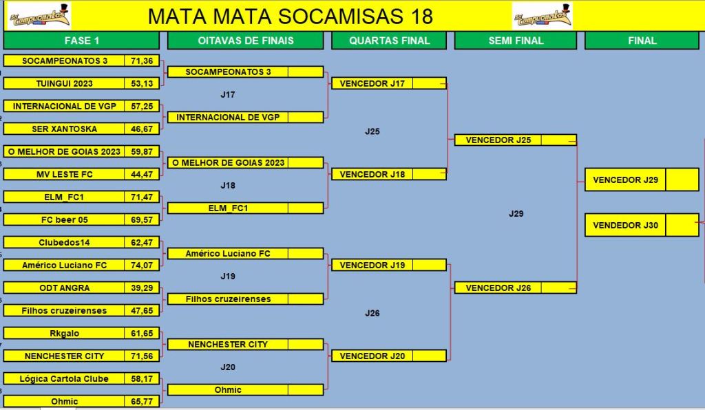 CHAMPIONS LEAGUE SOCAMPEONATOS 2 – FASE MATA MATA – FINAL e DISPUTA DO 3º,5º e 7º LUGARES Publicado em 25/07/2023 por socampeonatos