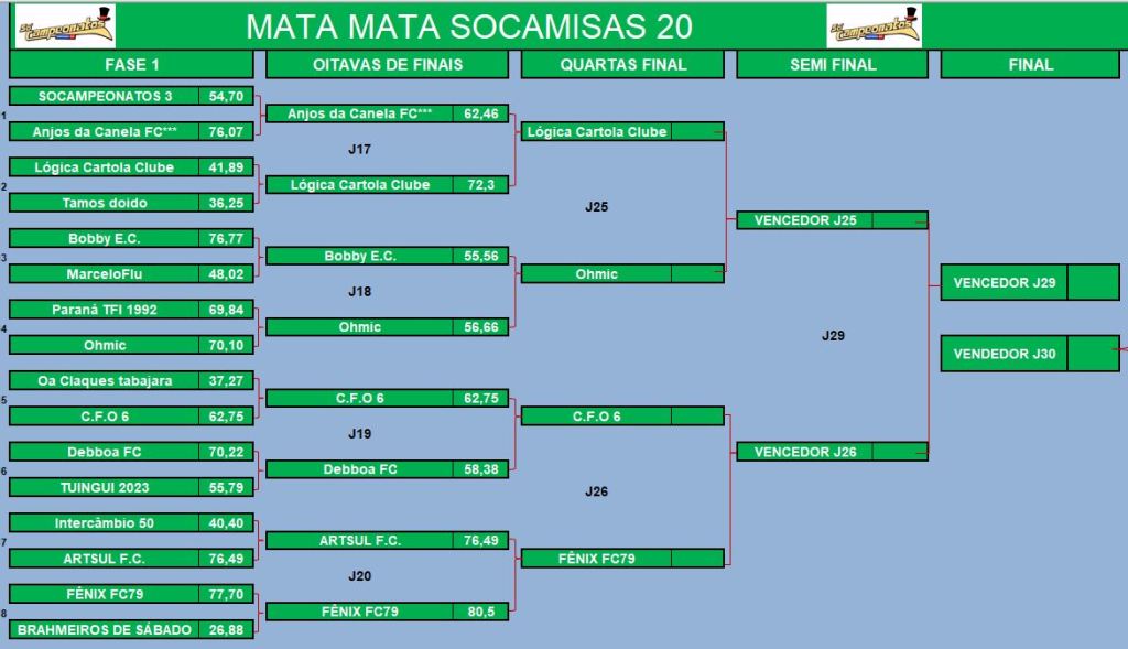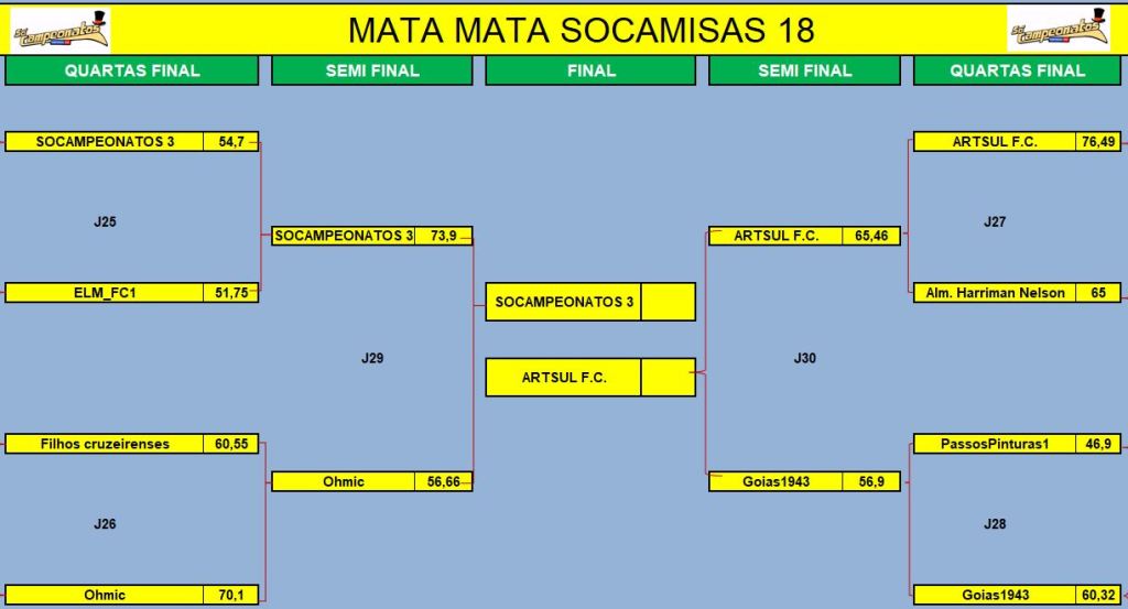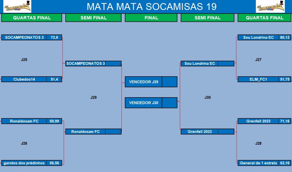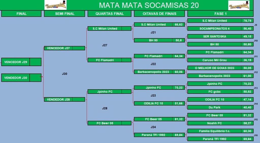 COPA DO MUNDO SOCAMPEONATOS 3 – FASE MATA MATA – QUARTAS DE FINAIS Publicado em 15/08/2023 por socampeonatos