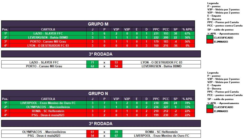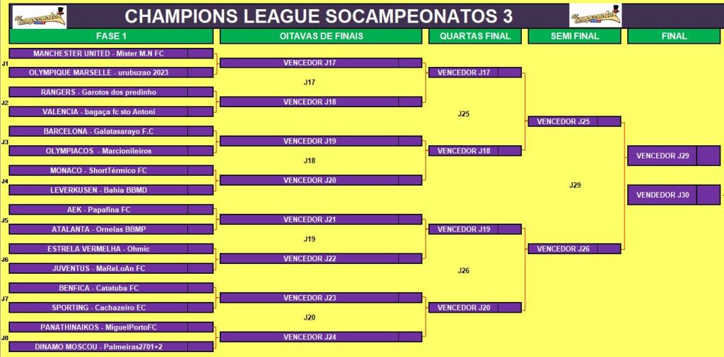 CHAMPIONS LEAGUE SOCAMPEONATOS 3 – FASE DE GRUPOS – ÚLTIMA RODADA Publicado em 15/08/2023 por socampeonatos