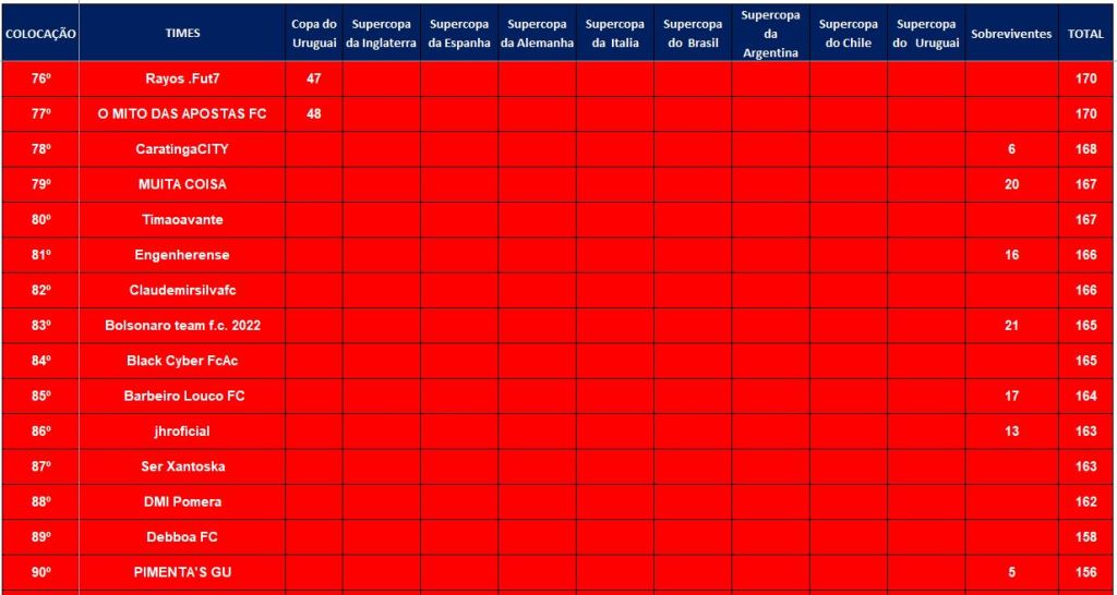 RANKING – RODADA 22 Publicado em 04/09/2023 por socampeonatos Compartilhe isso: Clique para compartilhar no X(abre em nova janela) 18+ Clique para compartilhar no Facebook(abre em nova janela) Facebook Clique para compartilhar no WhatsApp(abre em nova janela) WhatsApp Curtir Carregando... Relacionado