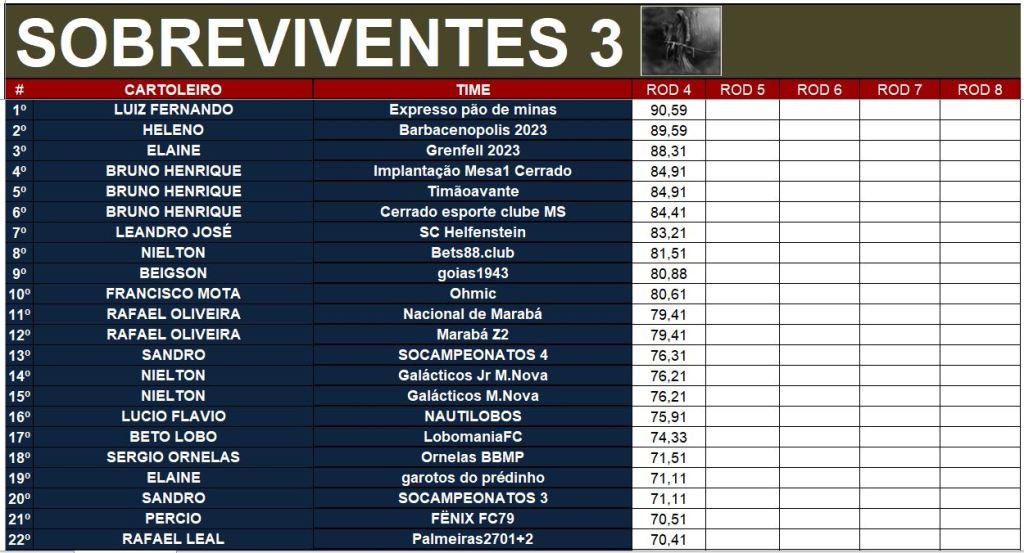 SOBREVIVENTES SOCAMPEONATOS 3 – RODADA 4 Publicado em 04/09/2023 por socampeonatos Compartilhe isso: Clique para compartilhar no X(abre em nova janela) 18+ Clique para compartilhar no Facebook(abre em nova janela) Facebook Clique para compartilhar no WhatsApp(abre em nova janela) WhatsApp Curtir Carregando... Relacionado