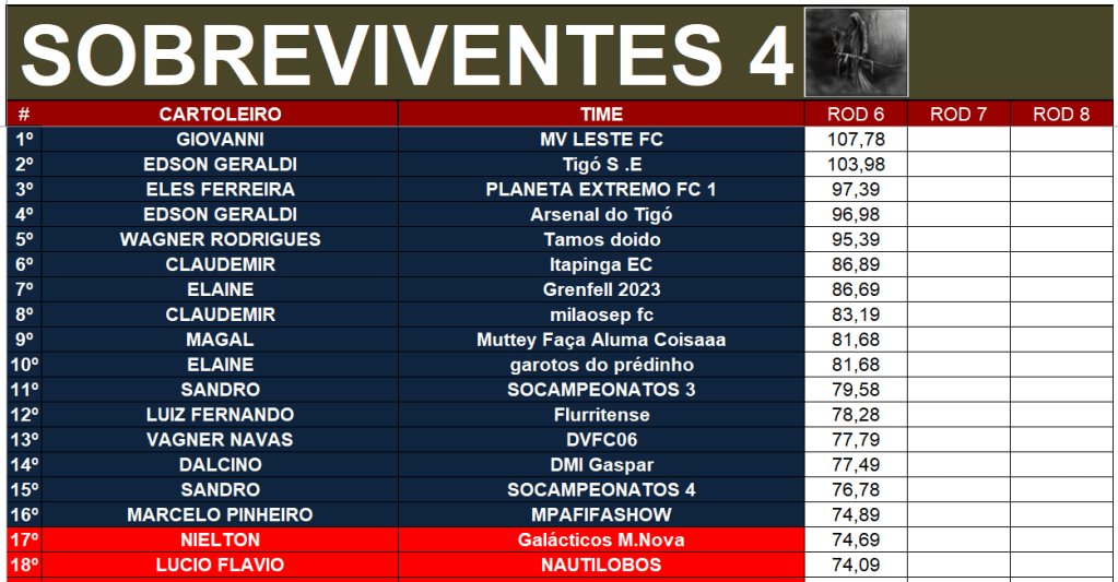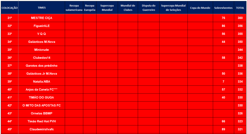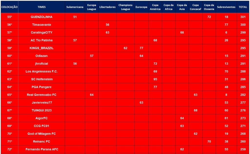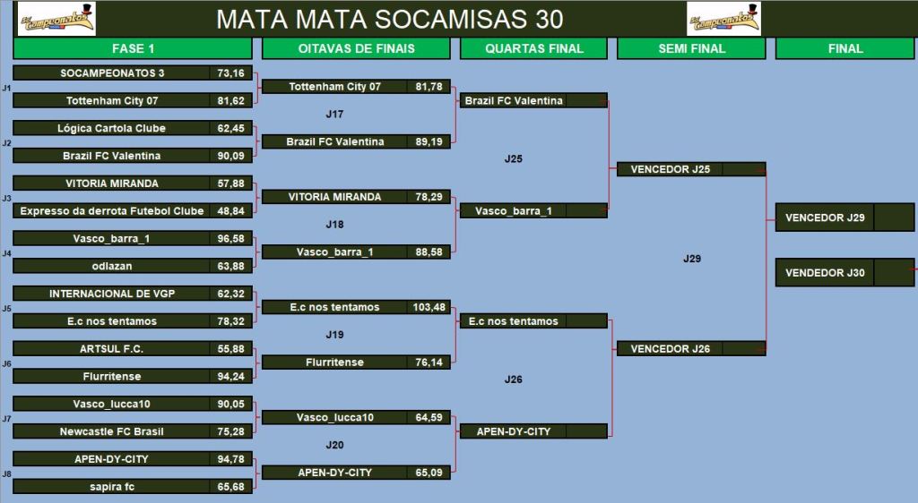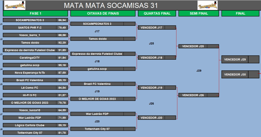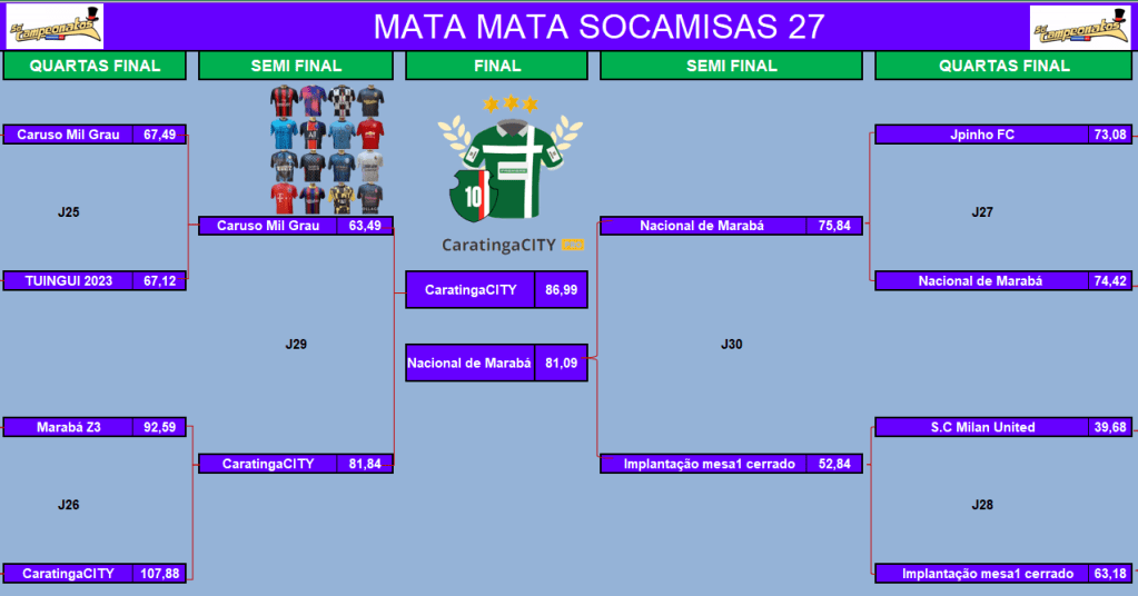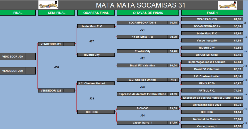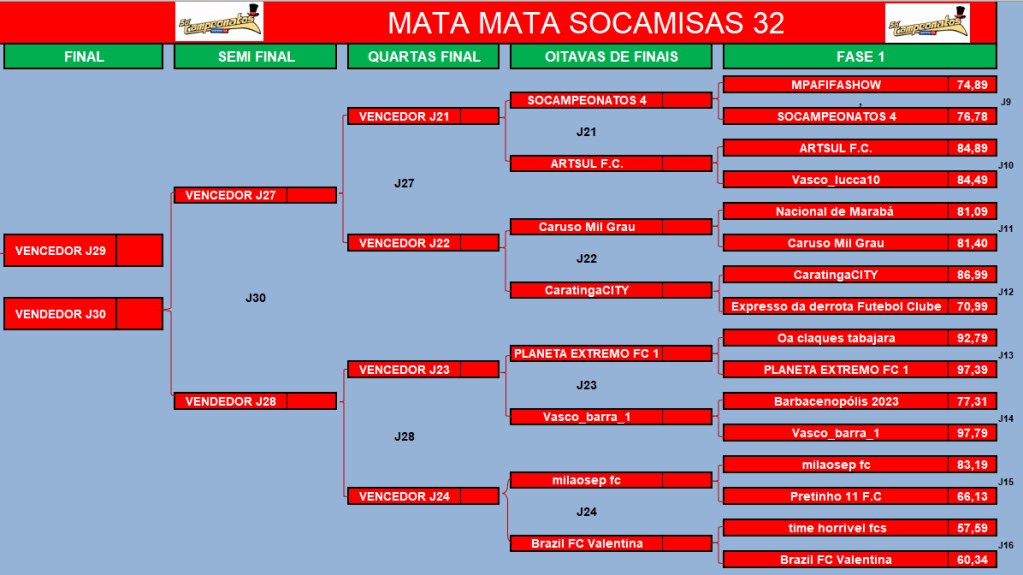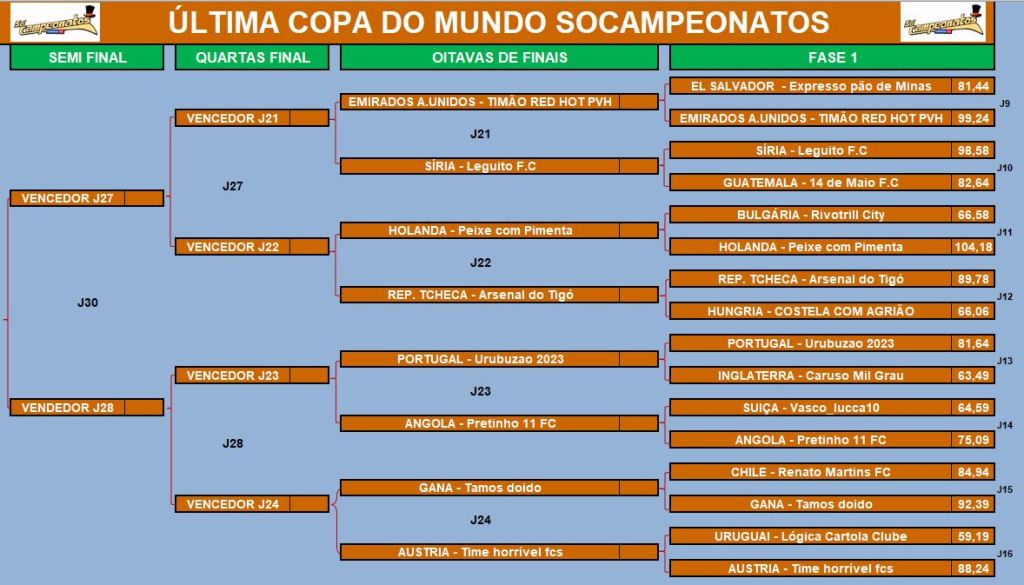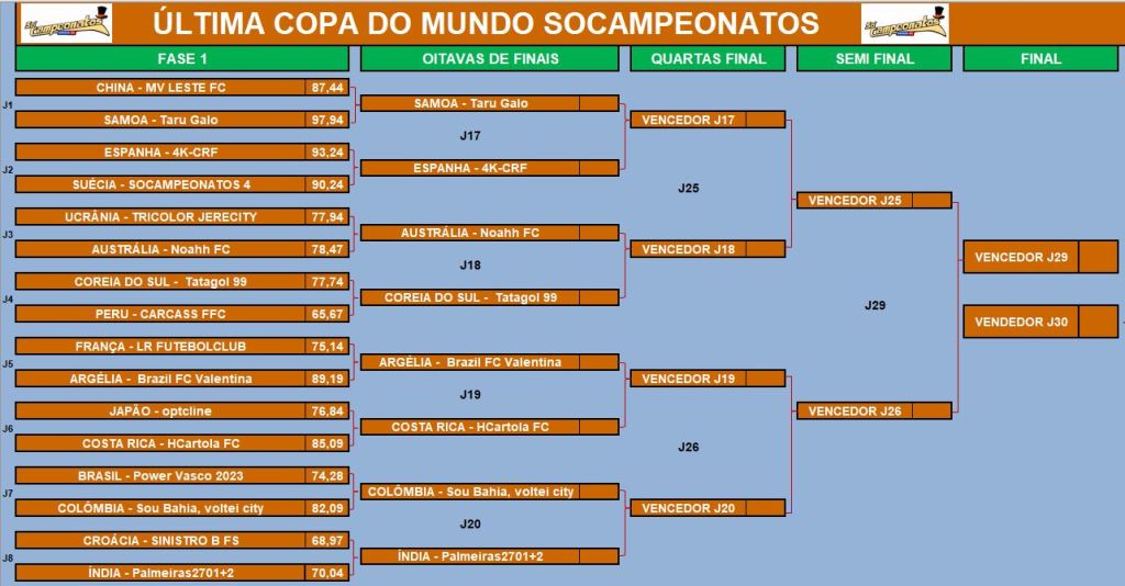 ÚLTIMA COPA DO MUNDO SOCAMPEONATOS – FASE MATA MATA – OITAVAS DE FINAIS Publicado em 30/10/2023 por socampeonatos