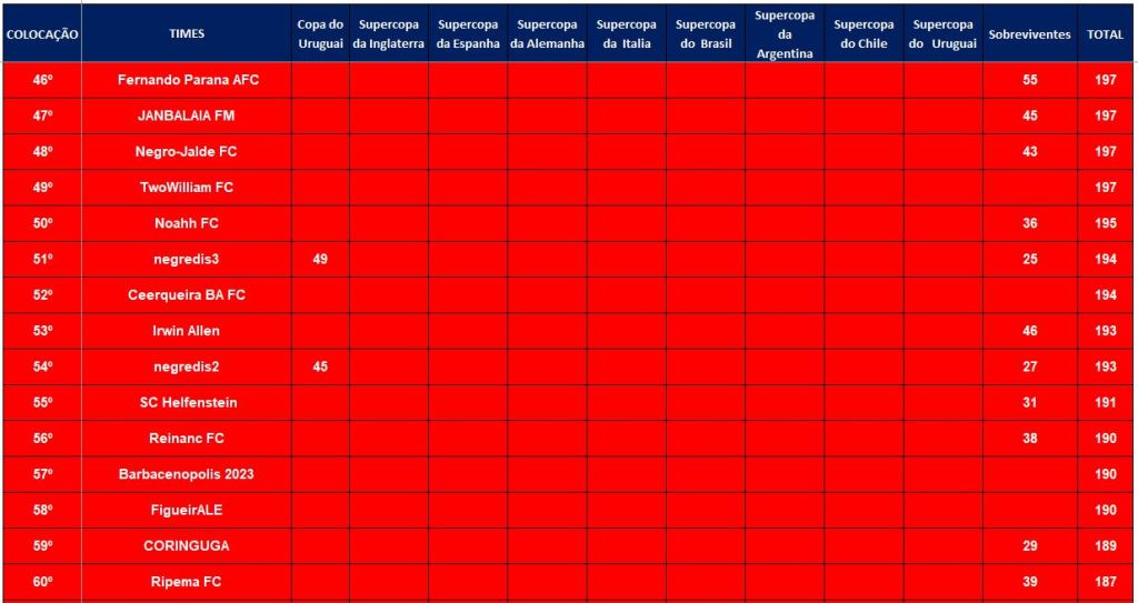 CHAMPIONS LEAGUE DA TEMPORADA – QUARTAS DE FINAIS e DISPUTA DO 9º LUGAR – VOLTA Publicado em 03/10/2023 por socampeonatos