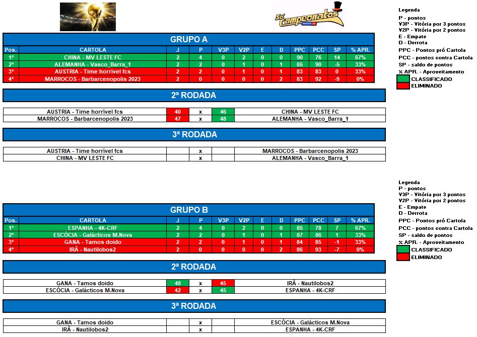 ÚLTIMA COPA DO MUNDO SOCAMPEONATOS – FASE DE GRUPOS – RODADA 2 Publicado em 20/10/2023 por socampeonatos