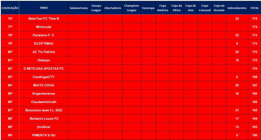 CHAMPIONS LEAGUE DA TEMPORADA – SEMI FINAL e DISPUTA DO 5º,9º13º LUGAR – VOLTA Publicado em 20/10/2023 por socampeonatos
