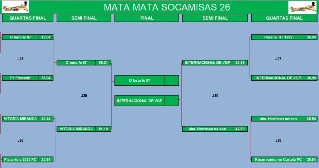 LIBERTADORES SOCAMPEONATOS 3 – FASE MATA MATA – QUARTAS DE FINAIS Publicado em 20/10/2023 por socampeonatos