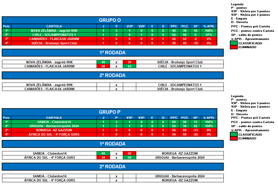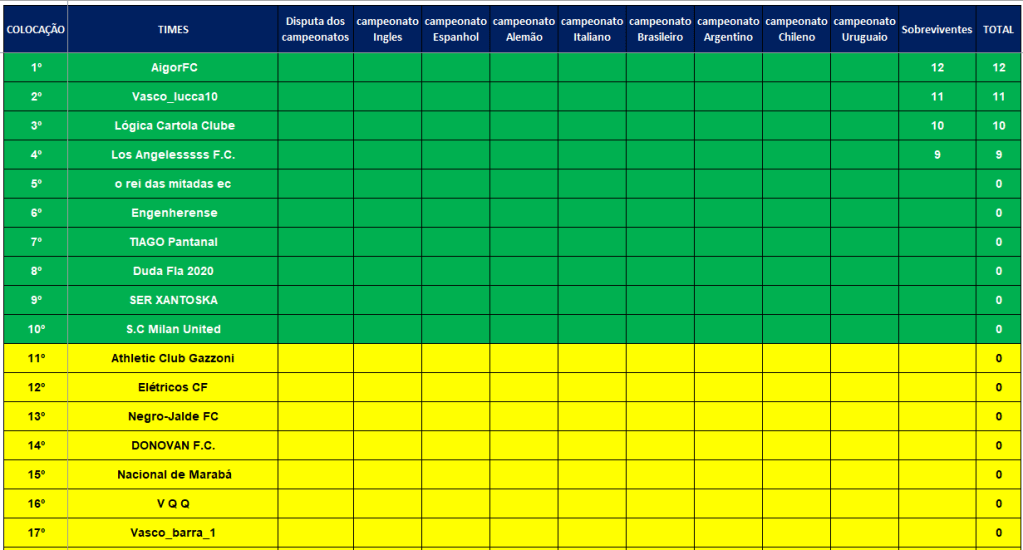 SOBREVIVENTES DA TEMPORADA – RODADA 1