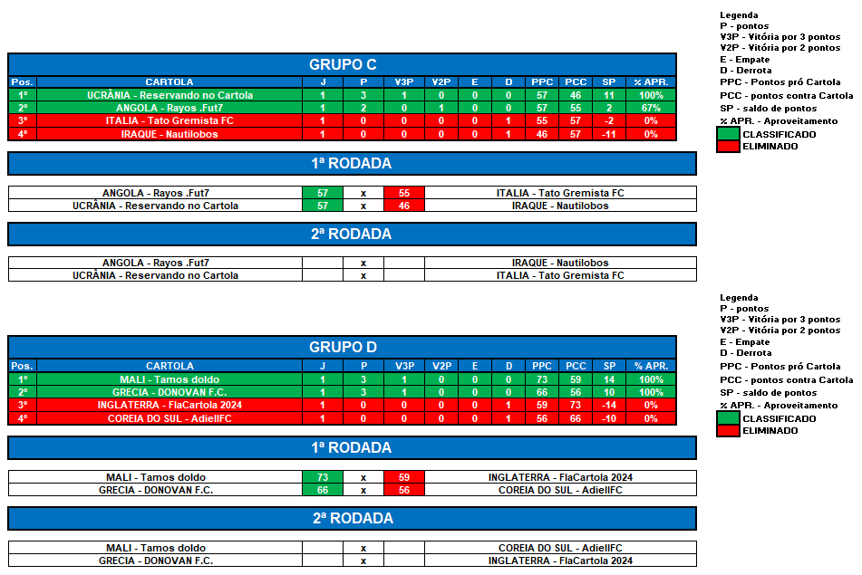 CLASSIFICAÇÃO DISPUTAS DOS CAMPEONATOS