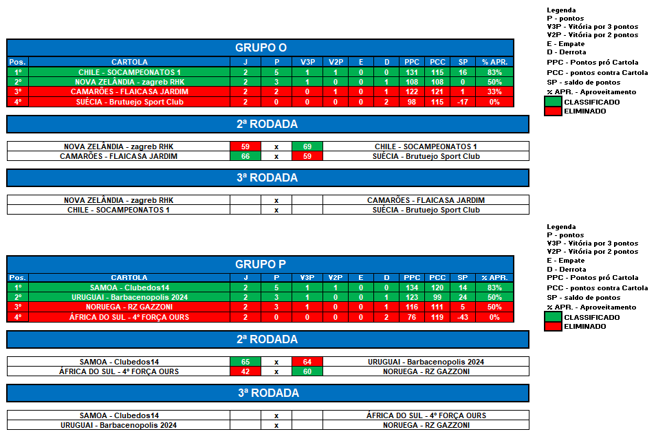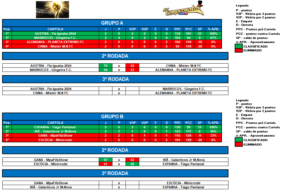 COPA DO MUNDO SOCAMPEONATOS – FASE DE GRUPOS – RODADA 2