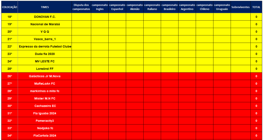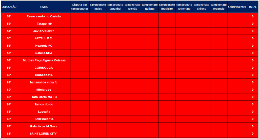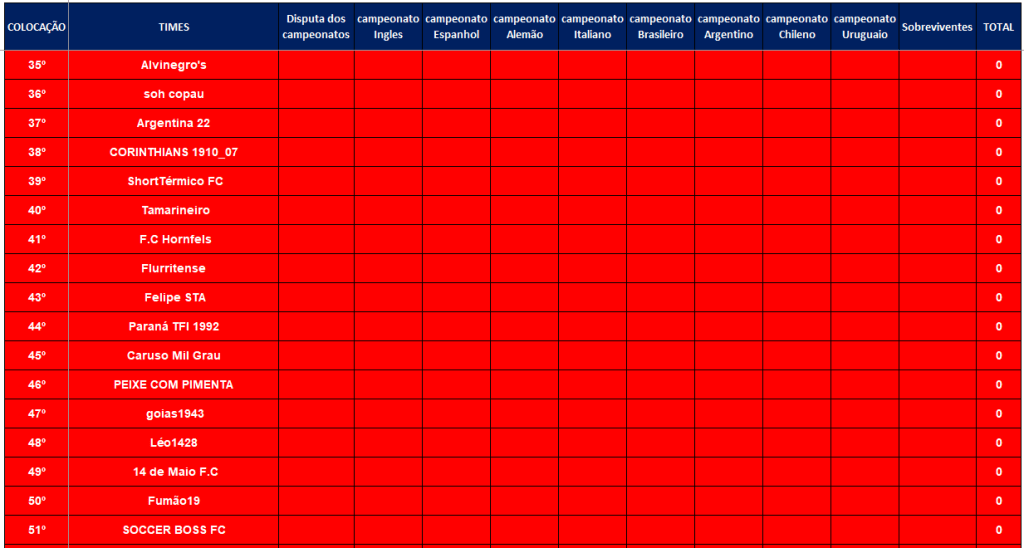 CLASSIFICAÇÃO – O MAIOR CAMPEONATOS DA HISTÓRIA