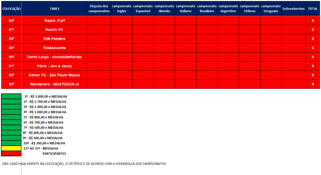 REGULAMENTO – O MAIOR CAMPEONATOS DA HISTÓRIA