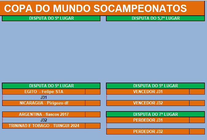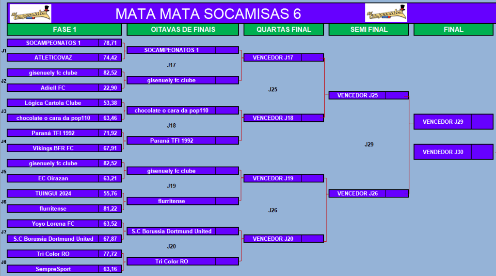 COPA DO MUNDO SOCAMPEONATOS – FASE MATA MATA – OITAVAS DE FINAIS Publicado em 06/05/2024 por socampeonatos