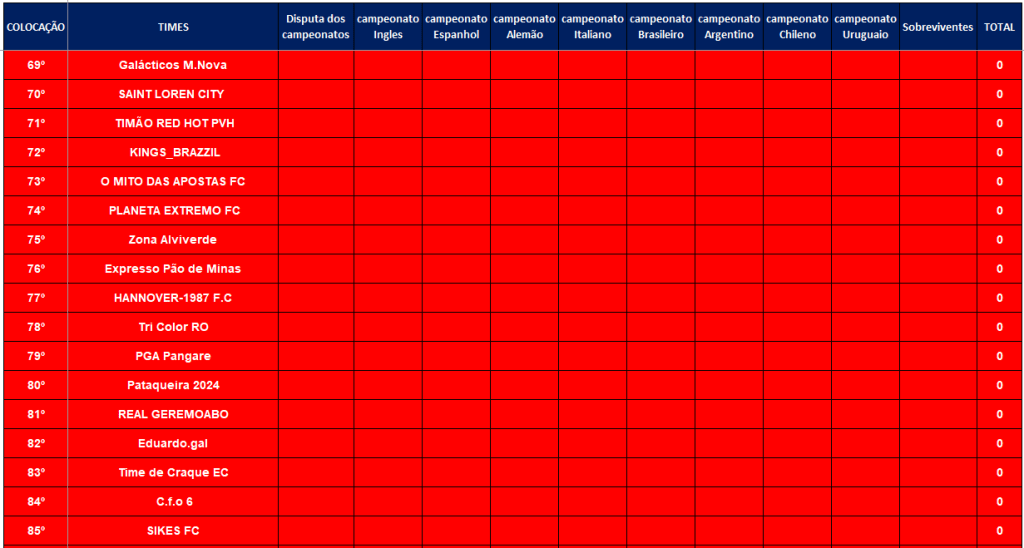 COPA DO MUNDO SOCAMPEONATOS – FASE MATA MATA – OITAVAS DE FINAIS Publicado em 06/05/2024 por socampeonatos