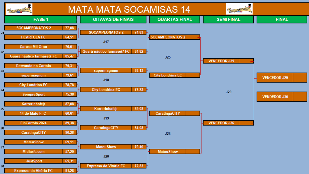 LIBERTADORES SOCAMPEONATOS – FASE MATA MATA – SEMI FINAL e 5º LUGAR Publicado em 05/07/2024 por socampeonatos