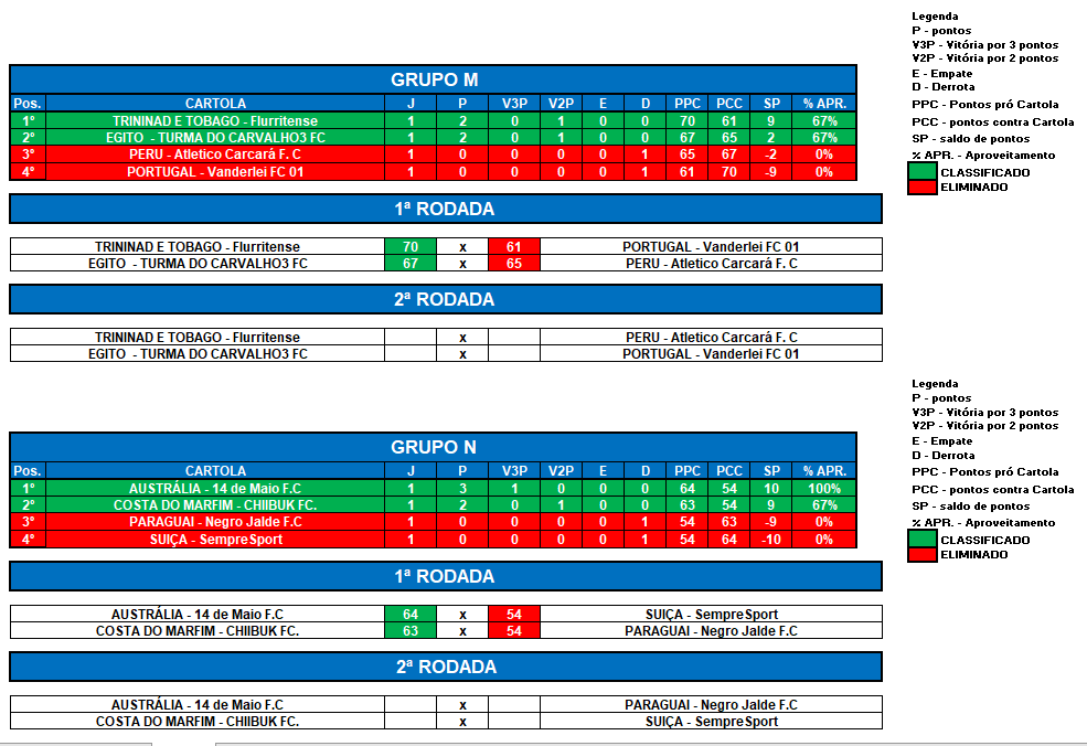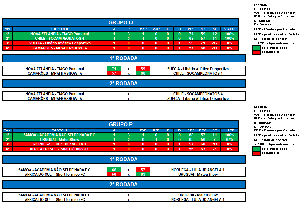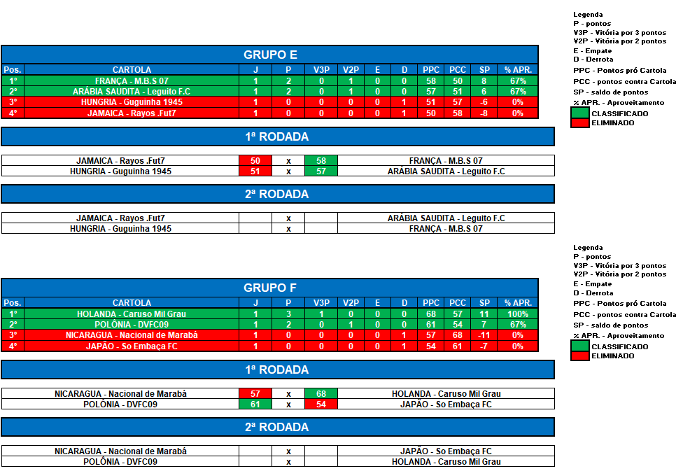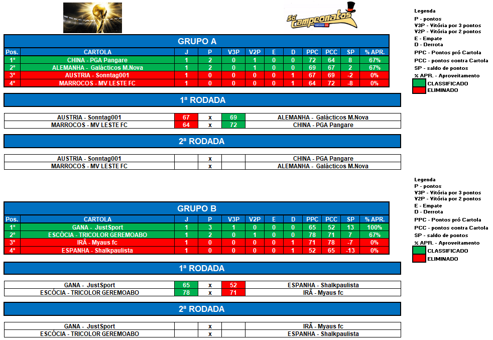 COPA DO MUNDO SOCAMPEONATOS 2 – RODADA 1
