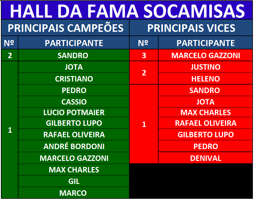 HALL DA FAMA SOCAMISAS – O VENCEDOR GANHA CAMISA!!!
