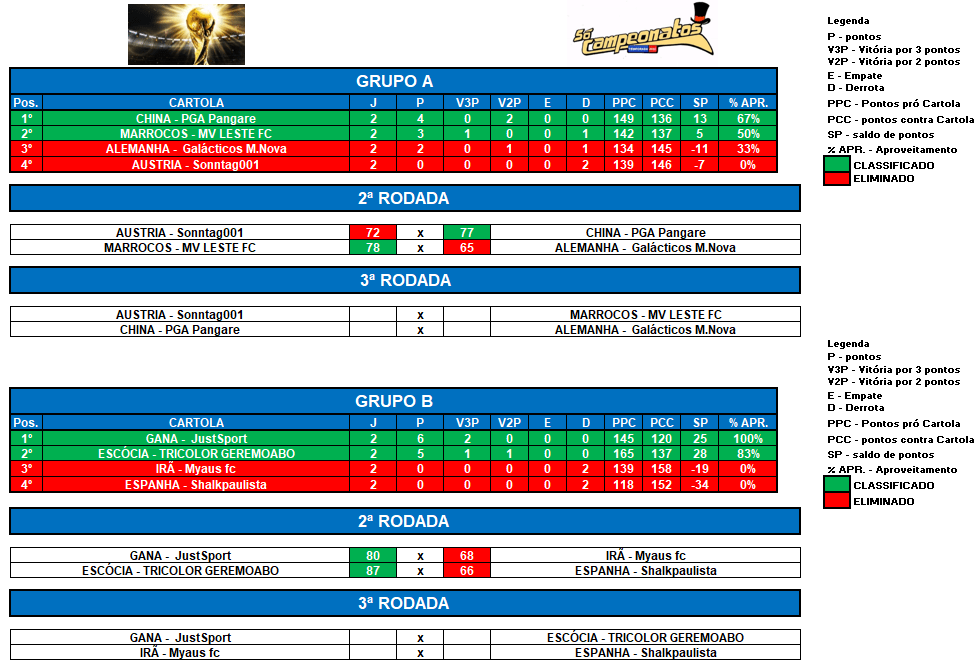 COPA DO MUNDO SOCAMPEONATOS 2 – RODADA 2