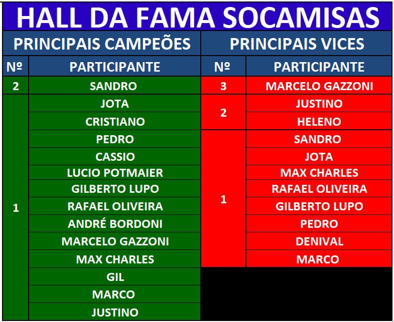 HALL DA FAMA SOCAMISAS – O VENCEDOR GANHA CAMISA!!!