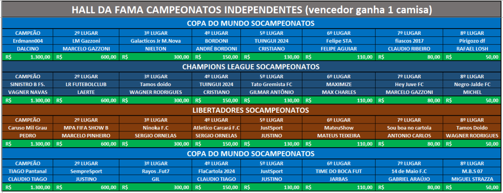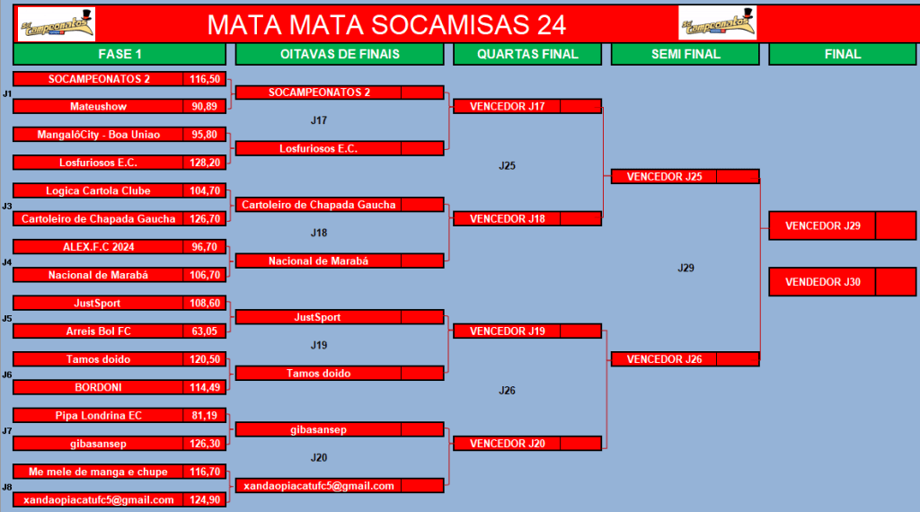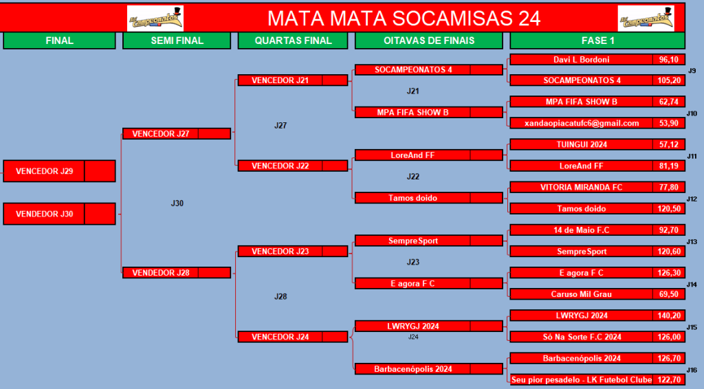 COPA DO MUNDO SOCAMPEONATOS 2 – FASE MATA MATA – FINAL e DISPUTA DO 3º,5º, 7º LUGAR Publicado em 27/08/2024 por socampeonatos