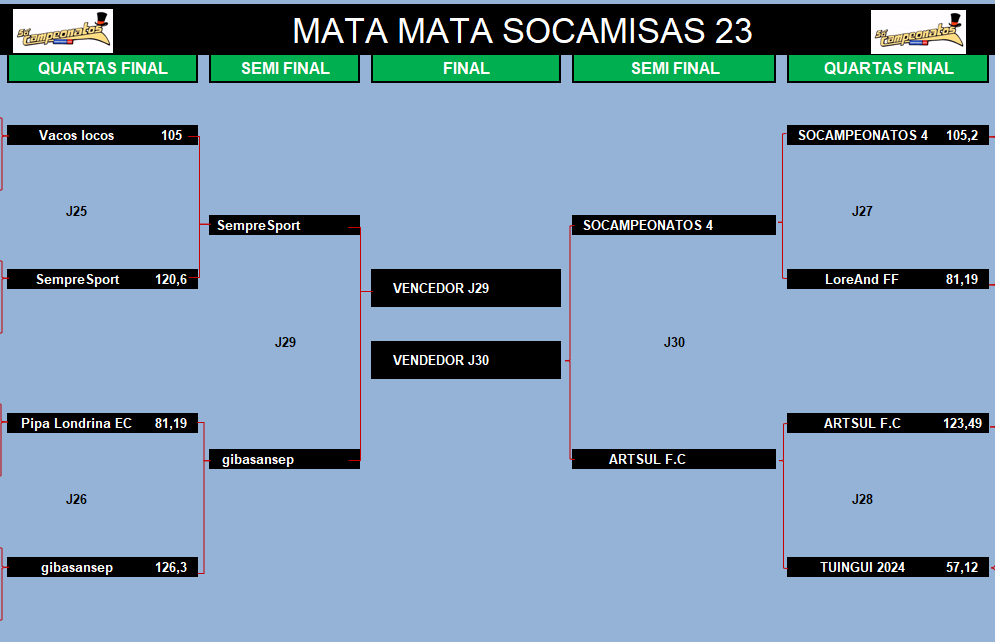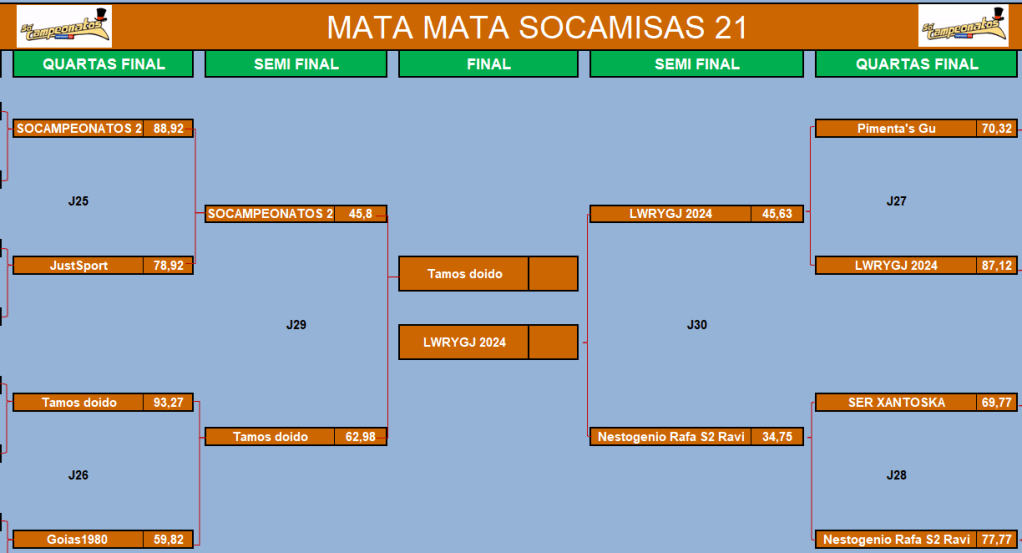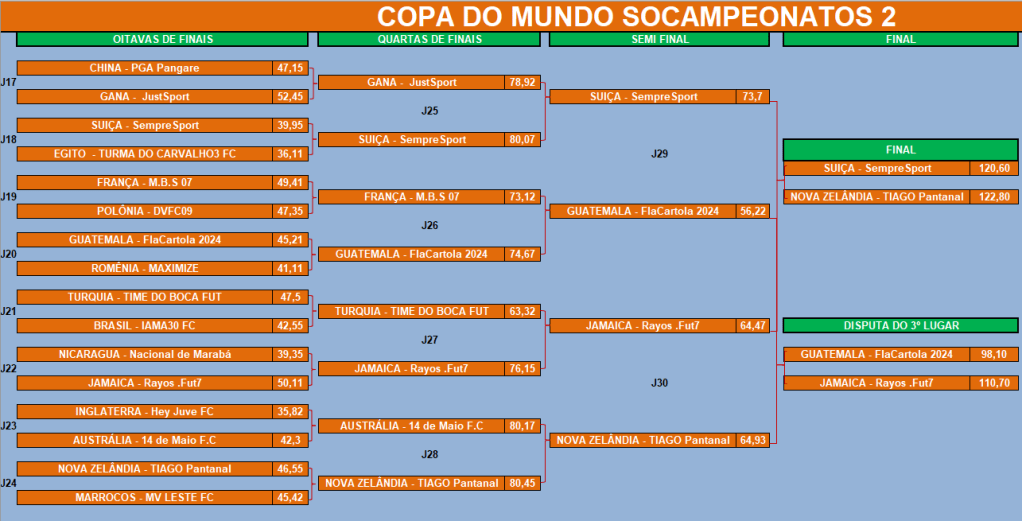 COPA DO MUNDO SOCAMPEONATOS 2 – FASE MATA MATA – SEMI FINAL e DISPUTA DO 5º LUGAR Publicado em 20/08/2024 por socampeonatos