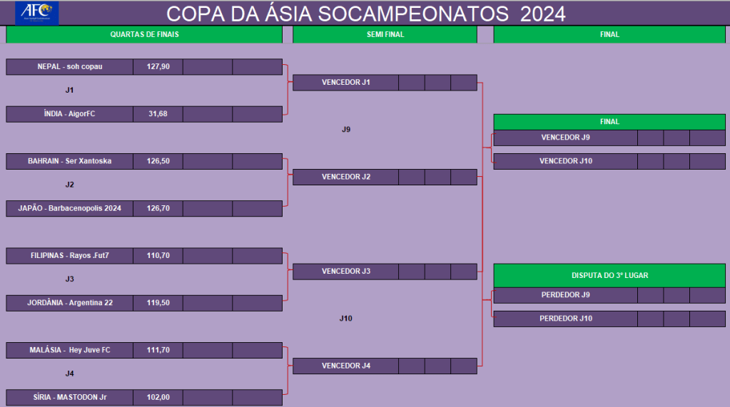 COPA DA ÁSIA – QUARTAS DE FINAIS e DISPUTA DO 5º LUGAR- IDA Publicado em 27/08/2024 por socampeonatos