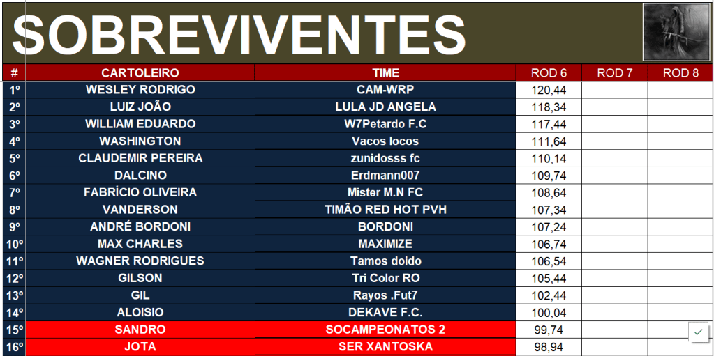 SOBREVIVENTES SOCAMPEONATOS – RODADA 6