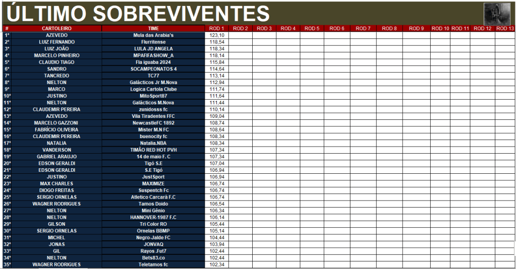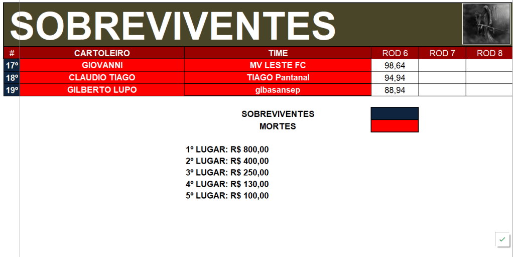SOBREVIVENTES DA TEMPORADA – RODADA 26
