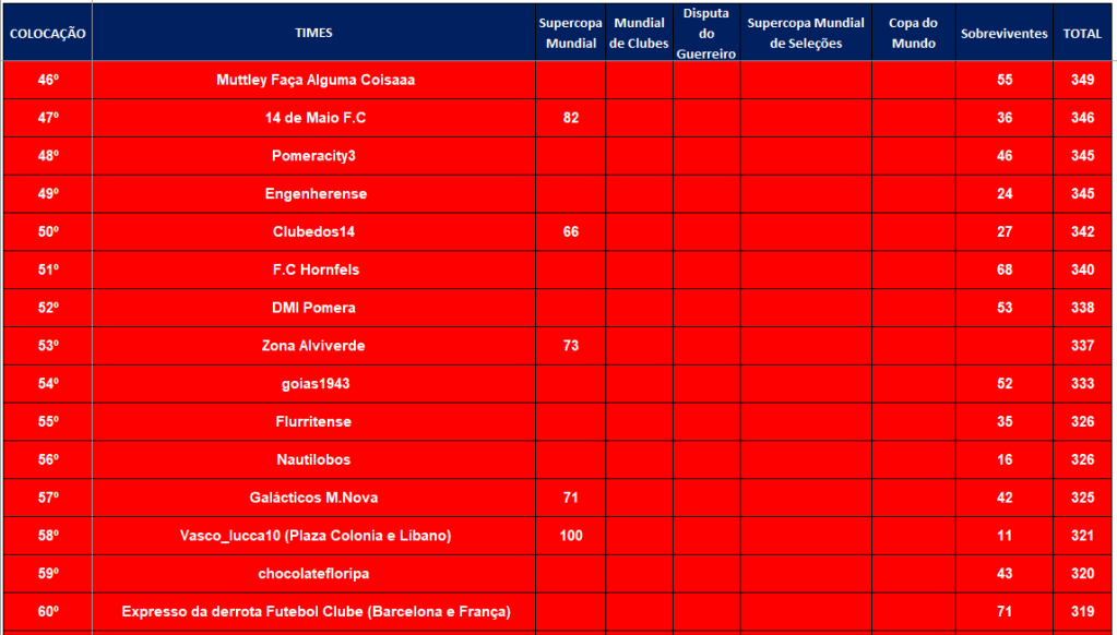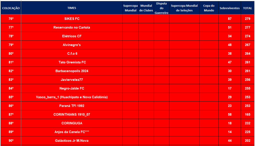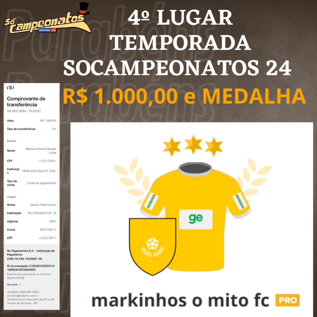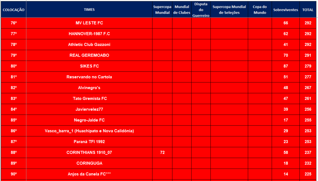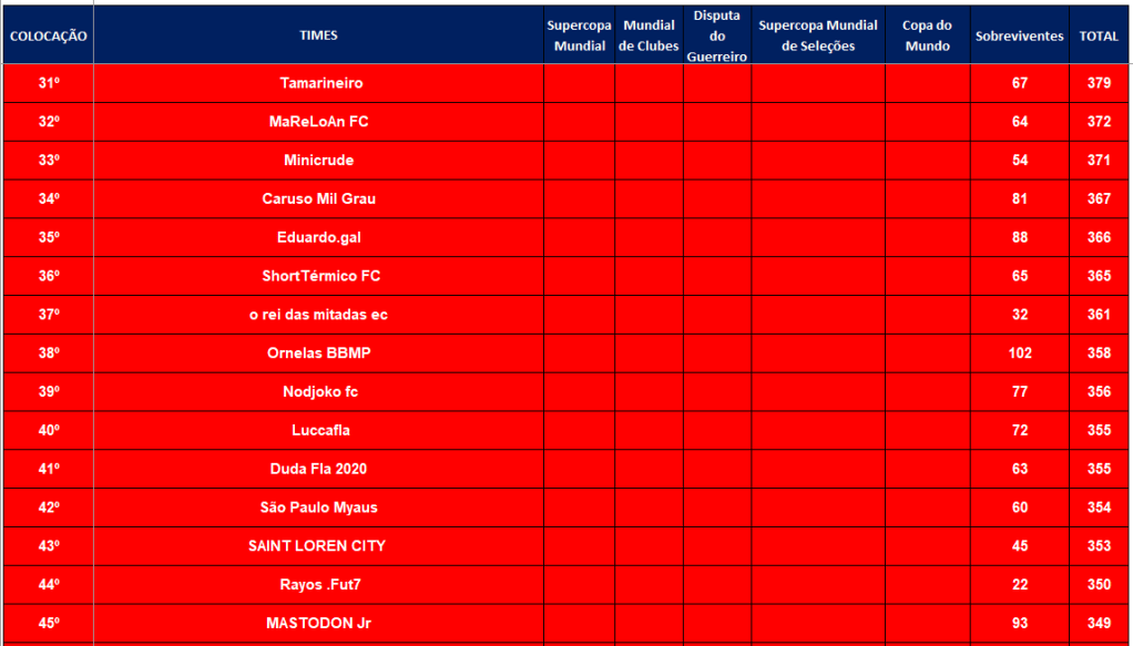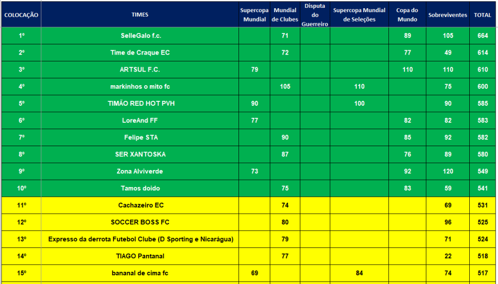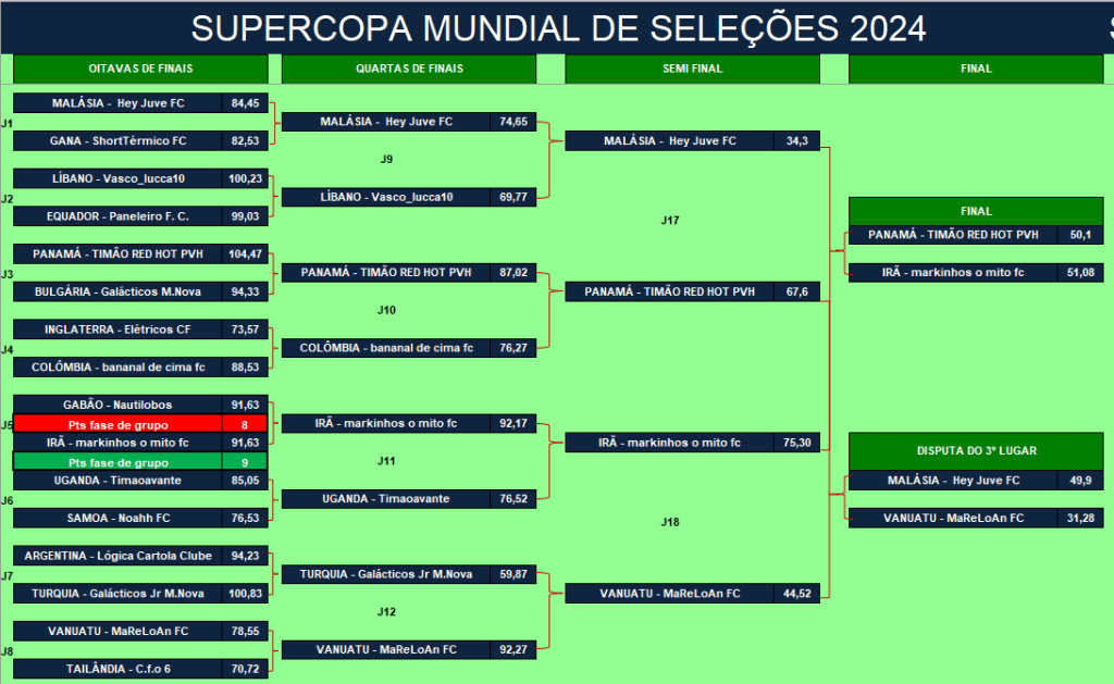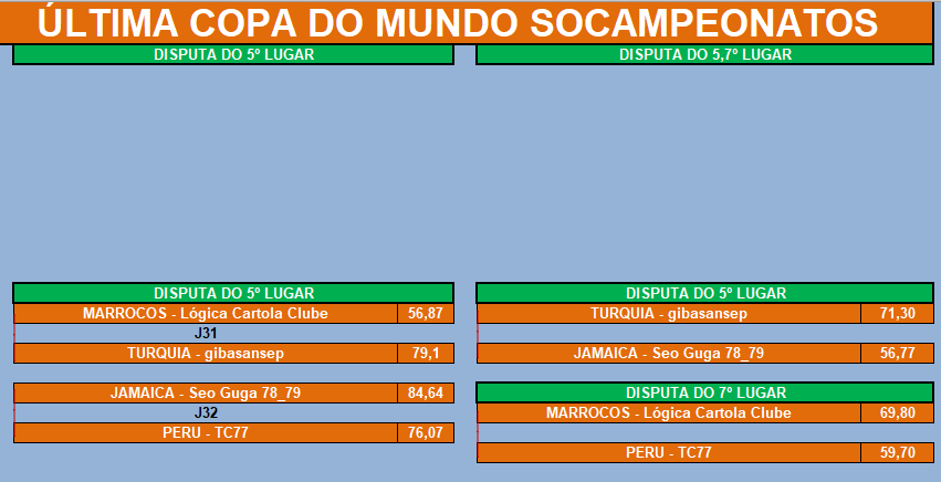 ÚLTIMA COPA DO MUNDO SOCAMPEONATOS – FASE MATA MATA – FINAL, DISPUTA DO 3º,5º,7º LUGARES Publicado em 06/12/2024 por socampeonatos
