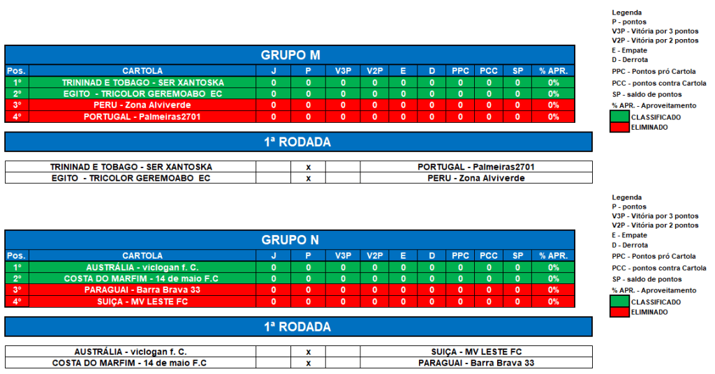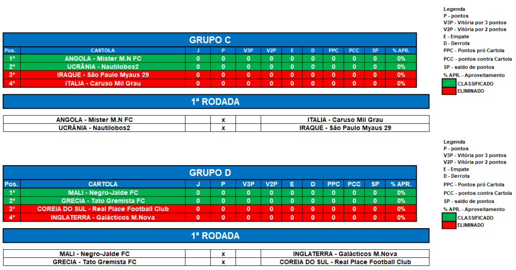 TABELA SUPERCOPA MUNDIAL DE SELEÇÕES