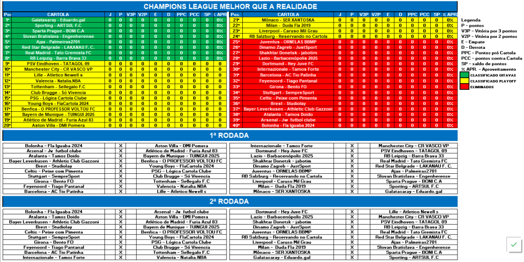 CHAMPIONS LEAGUE SOCAMPEONATOS TABELA