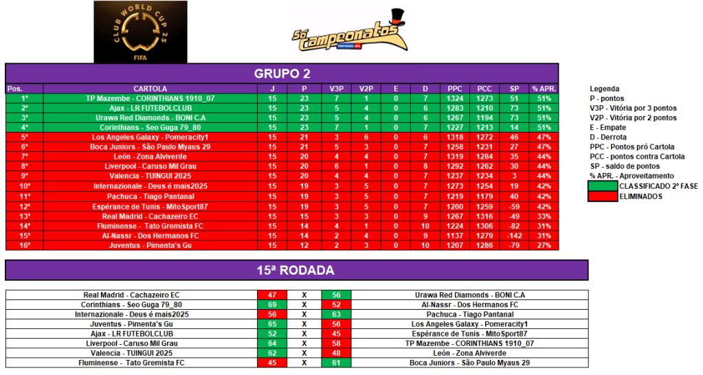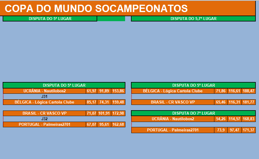 COPA DO MUNDO SOCAMPEONATOS – FASE DE MATA MATA – FINAL, DISPUTA DO 3º, 5º, 7º LUGARES – VOLTA Publicado em 15/07/2025 por socampeonatos