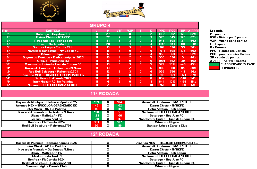 CHAMPIONS LEAGUE MELHOR QUE A REALIDADE – FASE MATA MATA – SEMI FINAL e DISPUTA DO 5º LUGAR – VOLTA Publicado em 25/07/2025 por socampeonatos