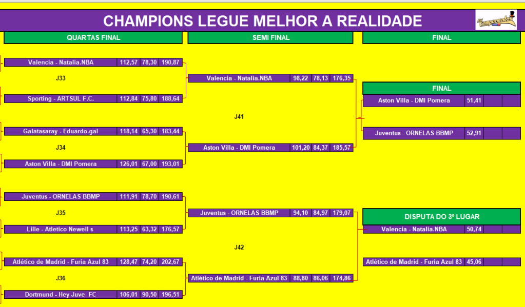 CHAMPIONS LEAGUE MELHOR QUE A REALIDADE – FASE MATA MATA – FINAL e DISPUTA DO 3º,5º e 7º LUGAR – IDA Publicado em 28/07/2025 por socampeonatos