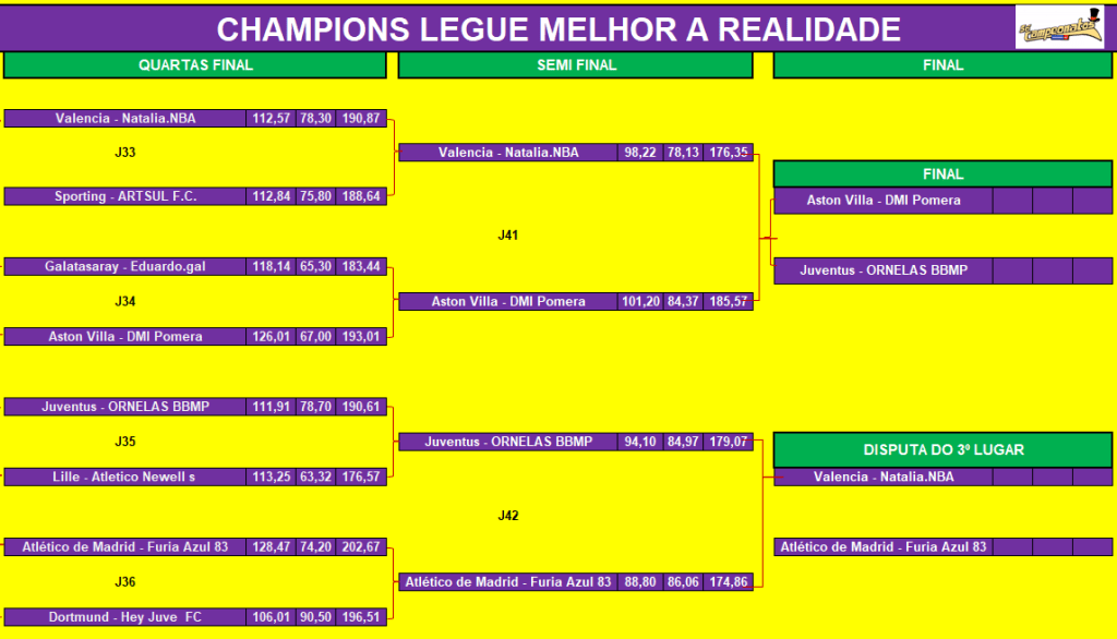 CHAMPIONS LEAGUE MELHOR QUE A REALIDADE – FASE MATA MATA – QUARTAS DE FINAIS – VOLTA Publicado em 18/07/2025 por socampeonatos