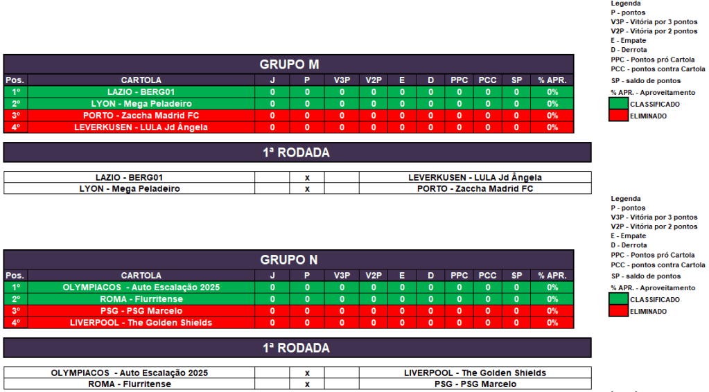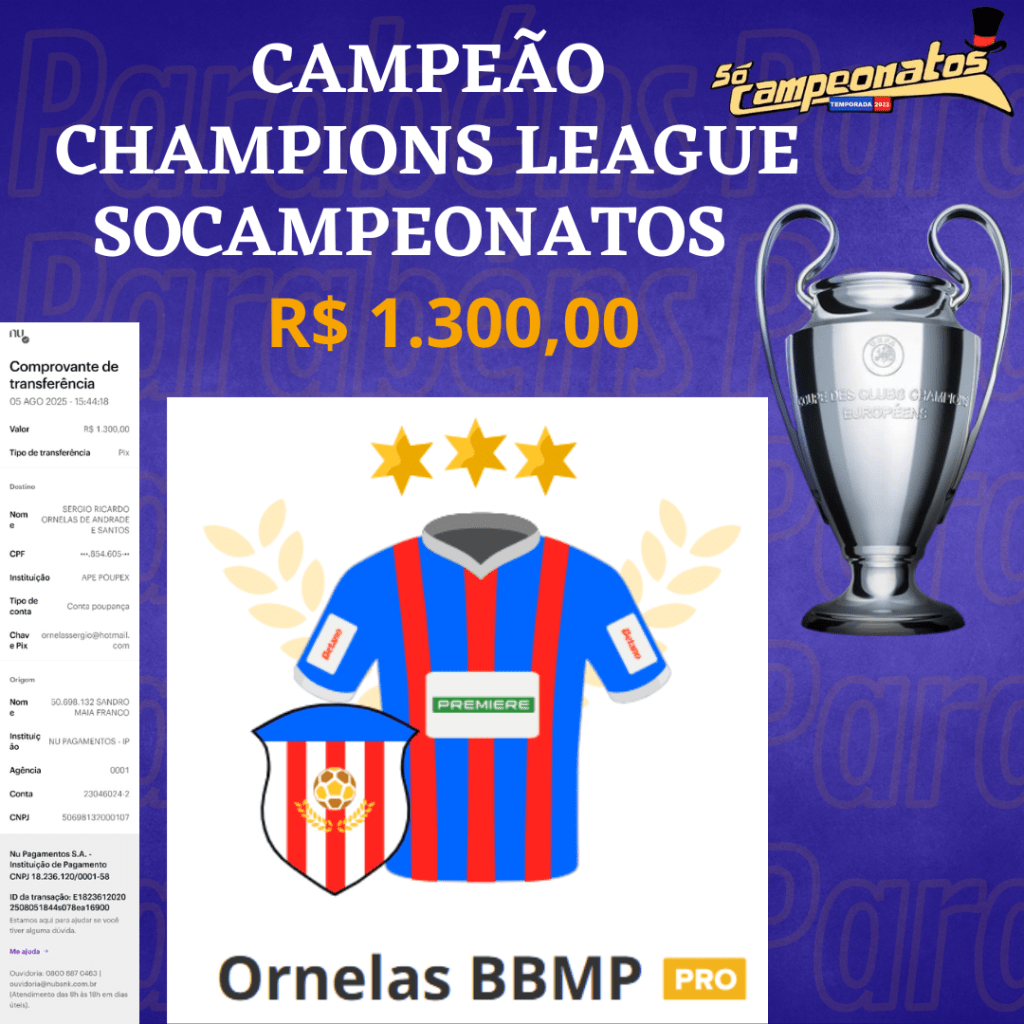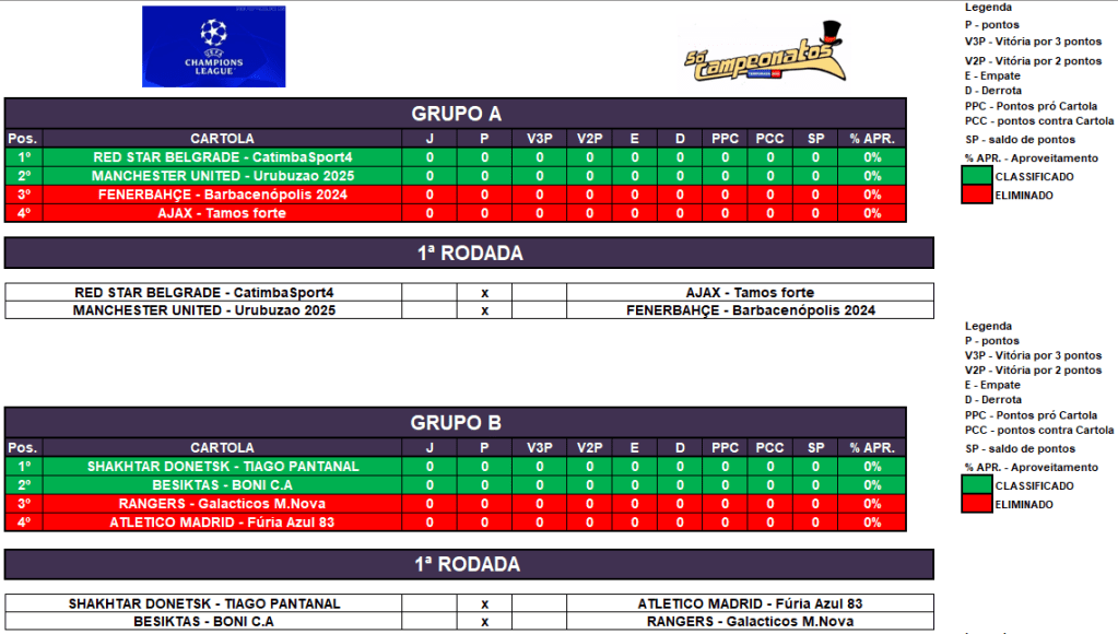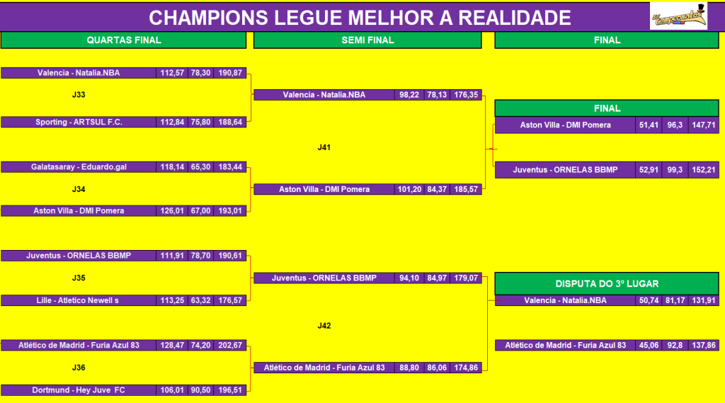 CHAMPIONS LEAGUE MELHOR QUE A REALIDADE – FASE MATA MATA – FINAL e DISPUTA DO 3º,5º e 7º LUGAR – VOLTA Publicado em 05/08/2025 por socampeonatos