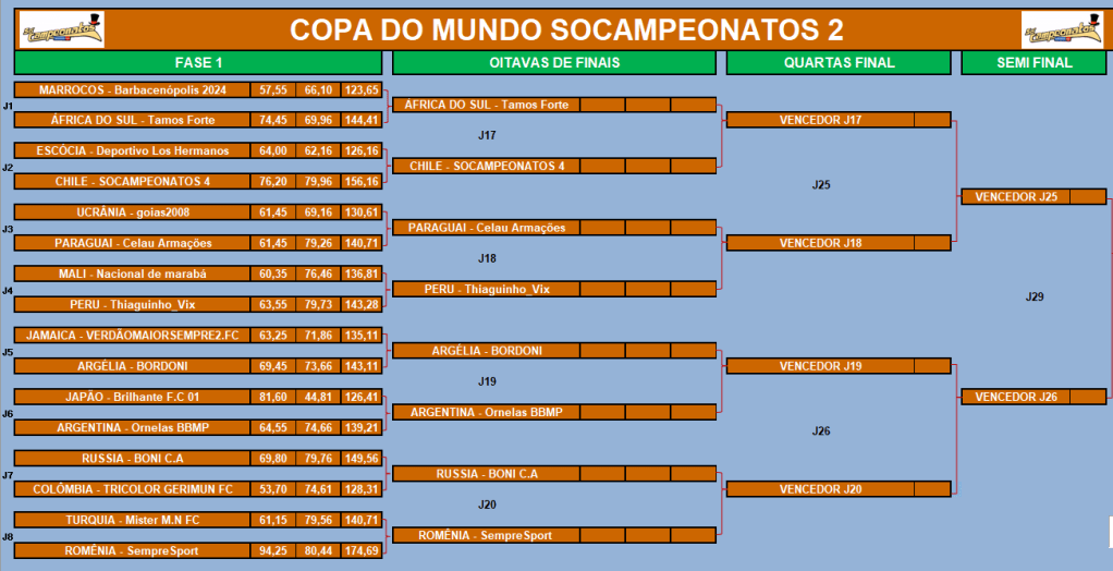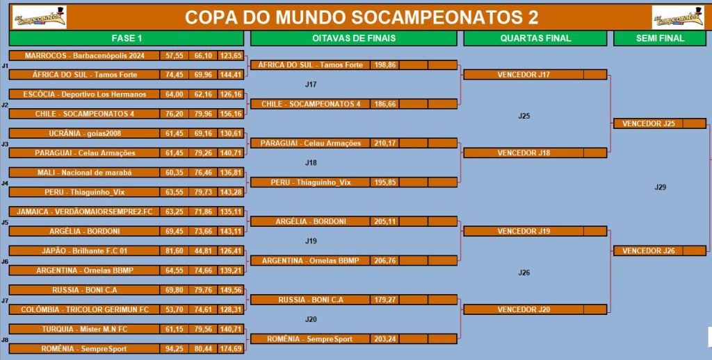 LIBERTADORES SOCAMPEONATOS – FASE MATA MATA – FINAL E DISPUTA DO 3º, 5º, 7º LUGAR – IDA Publicado em 05/08/2025 por socampeonatos