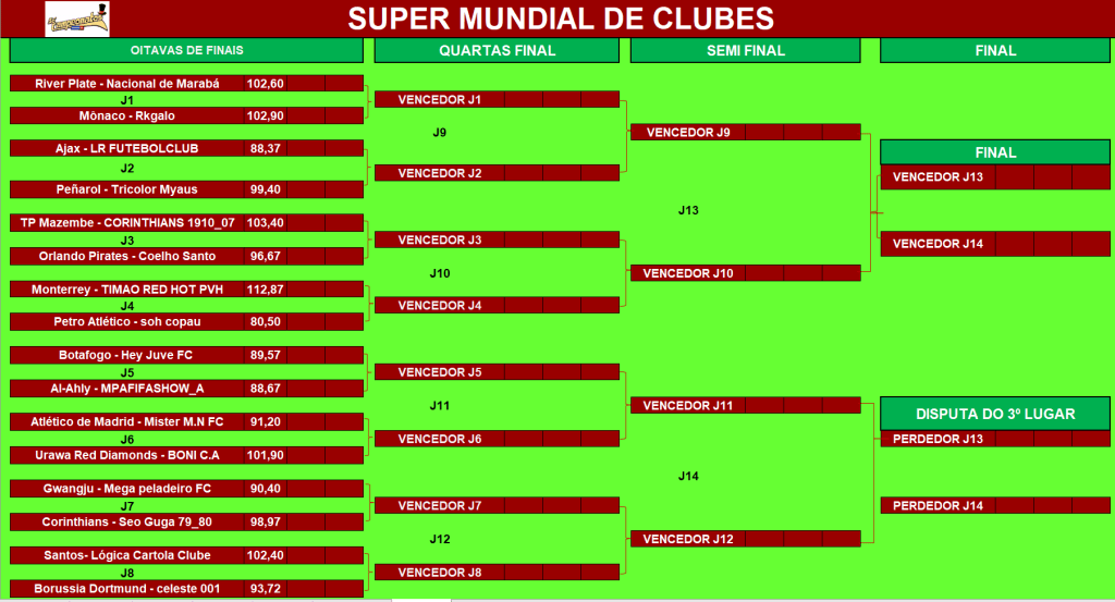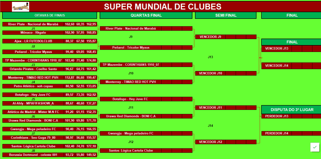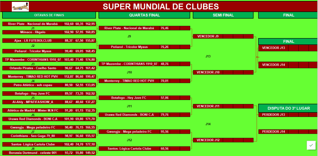 SUPER MUNDIAL DE CLUBES – FASE MATA MATA – OITAVAS DE FINAIS – VOLTA Publicado em 13/08/2025 por socampeonatos