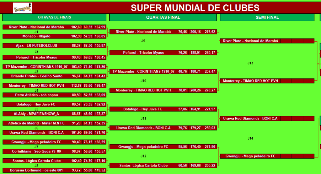 SUPER MUNDIAL DE CLUBES – FASE MATA MATA – QUARTAS DE FINAIS – IDA Publicado em 19/08/2025 por socampeonatos