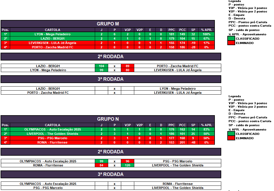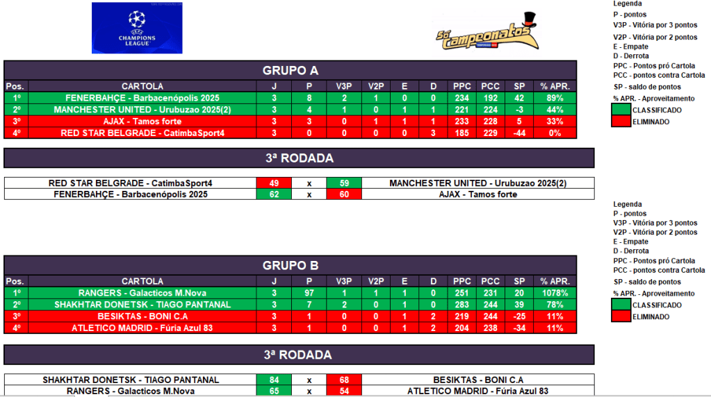 CHAMPIONS LEAGUE SOCAMPEONATOS 2 – FASE DE GRUPOS – RODADA 3 Publicado em 22/09/2025 por socampeonatos