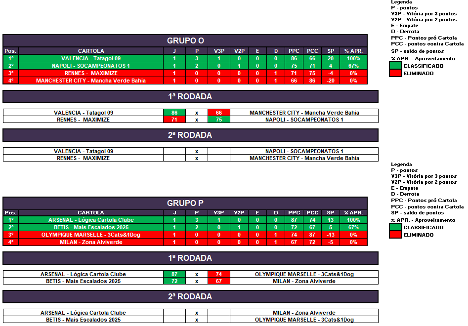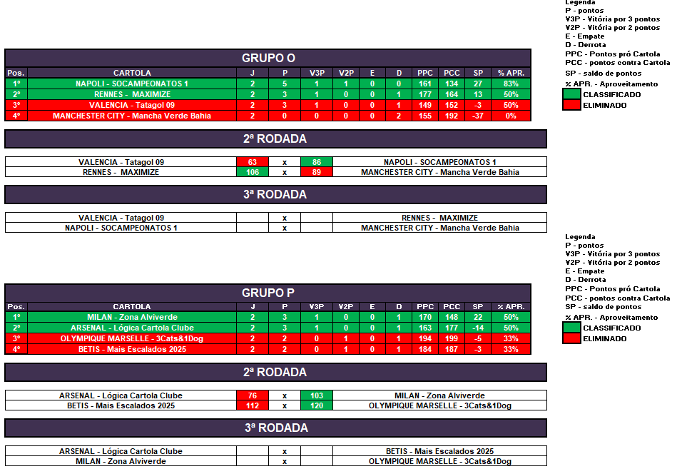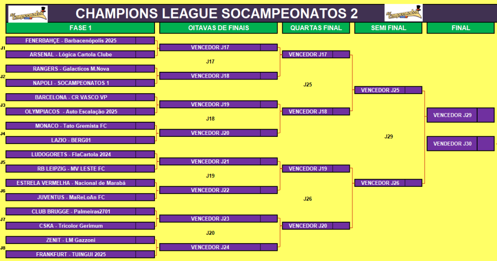 CHAMPIONS LEAGUE SOCAMPEONATOS 2 – FASE DE GRUPOS – RODADA 2 Publicado em 16/09/2025 por socampeonatos