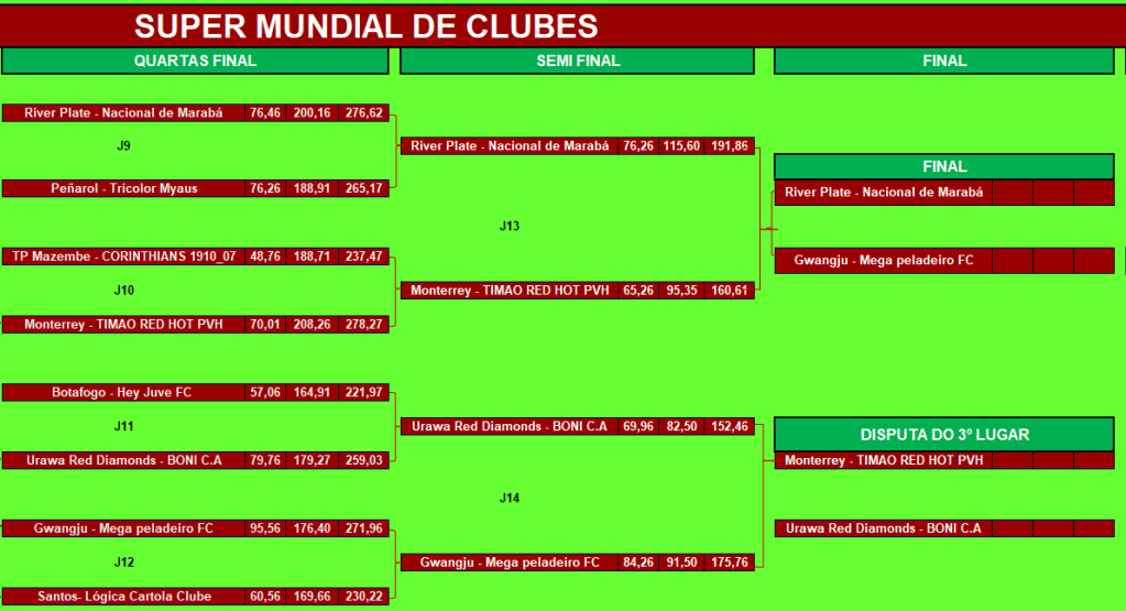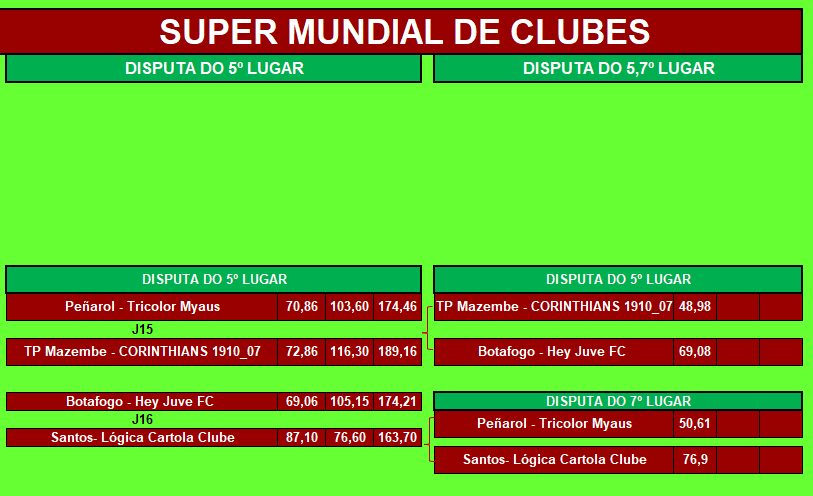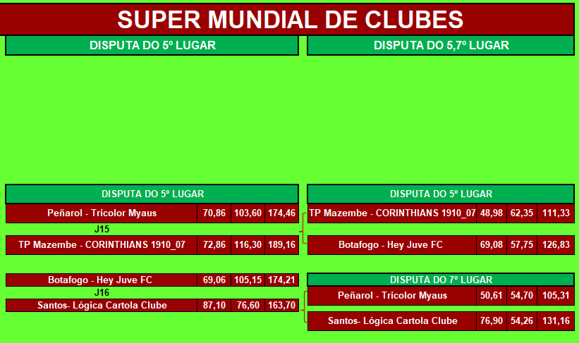 SUPER MUNDIAL DE CLUBES – FASE MATA MATA – FINAL E DISPUTA 7º,5º3º LUGAR – VOLTA Publicado em 30/09/2025 por socampeonatos