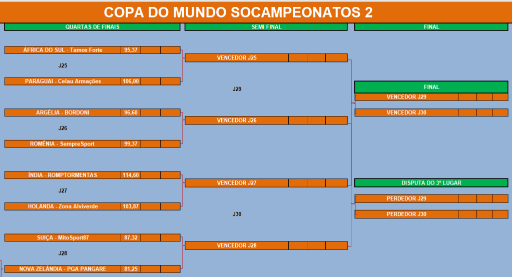 COPA DO MUNDO SOCAMPEONATOS 2 – SEMI FINAL E DISPUTA DO 5º LUGAR – IDA Publicado em 30/09/2025 por socampeonatos