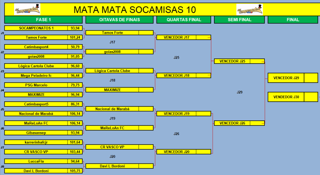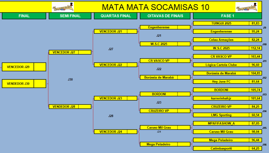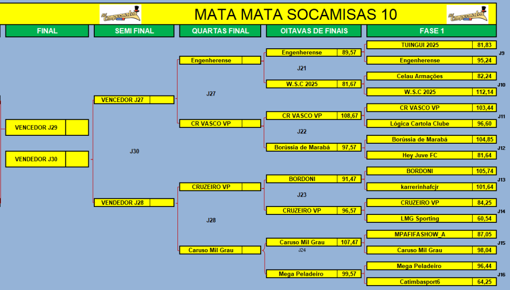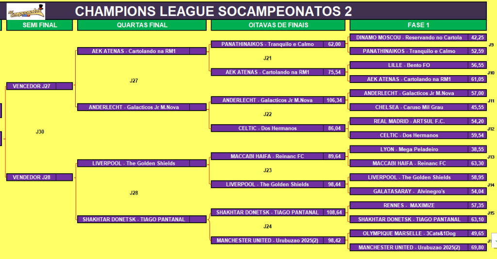 CHAMPIONS LEAGUE SOCAMPEONATOS 2 – FASE MATA MATA – OITAVAS DE FINAIS Publicado em 03/10/2025 por socampeonatos