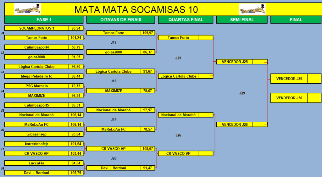 CHAMPIONS LEAGUE SOCAMPEONATOS 2 – FASE MATA MATA – FINAL e DISPUTA DO 3º,5º,7º LUGARES Publicado em 21/10/2025 por socampeonatos