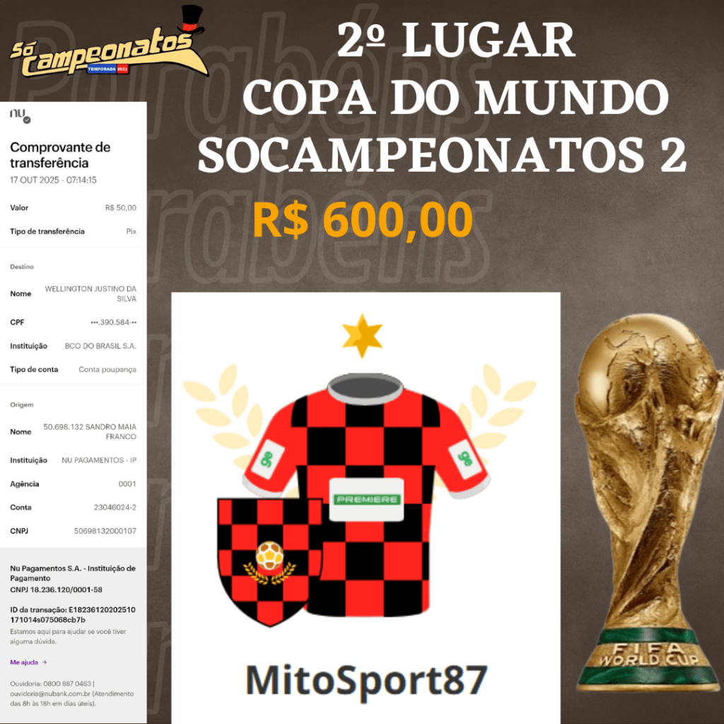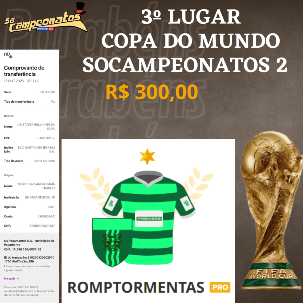COPA DO MUNDO SOCAMPEONATOS 2 – FINAL E DISPUTA DO 3º,5º e 7º LUGAR – IDA Publicado em 06/10/2025 por socampeonatos