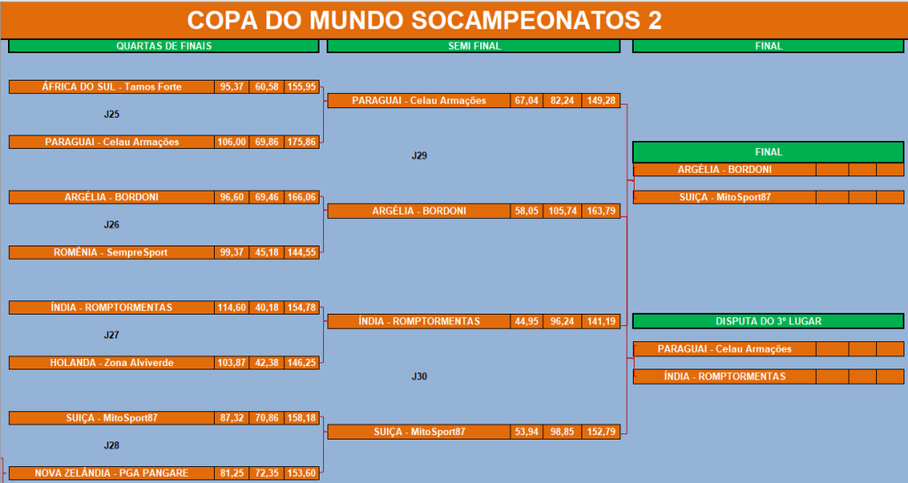 COPA DO MUNDO SOCAMPEONATOS 2 – SEMI FINAL E DISPUTA DO 5º LUGAR – VOLTA Publicado em 03/10/2025 por socampeonatos