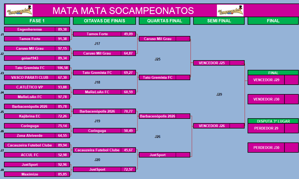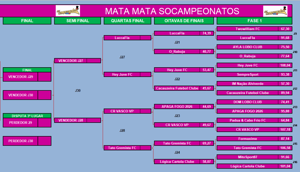 MATA MATA SOCAMPEONATOS – OITVAS DE FINAIS Publicado em 06/04/2026 por socampeonatos Compartilhe isso: Compartilhar no X(abre em nova janela) 18+ Compartilhar no Facebook(abre em nova janela) Facebook Compartilhar no WhatsApp(abre em nova janela) WhatsApp Curtir Carregando... Relacionado