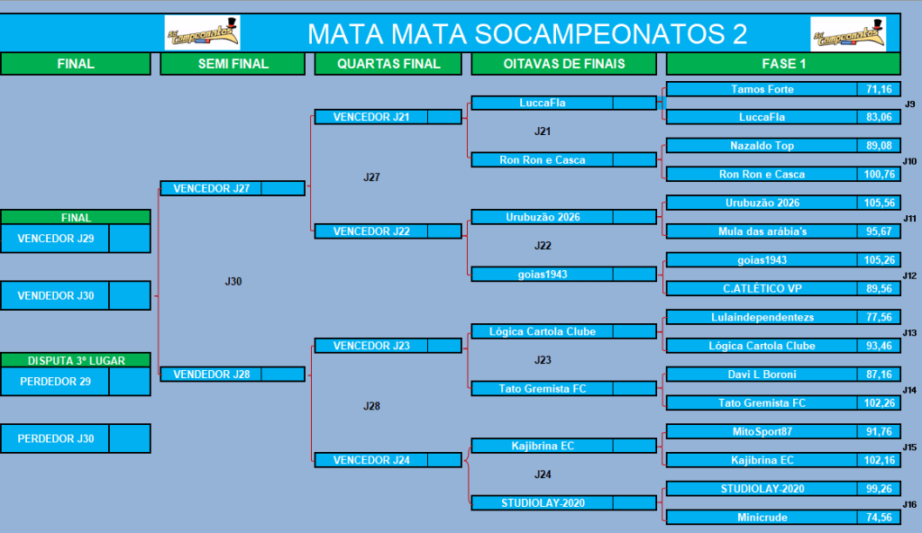 MATA MATA SOCAMPEONATOS 2 – FASE 1 Publicado em 13/04/2026 por socampeonatos Compartilhe isso: Compartilhar no X(abre em nova janela) 18+ Compartilhar no Facebook(abre em nova janela) Facebook Compartilhar no WhatsApp(abre em nova janela) WhatsApp Curtir Carregando... Relacionado